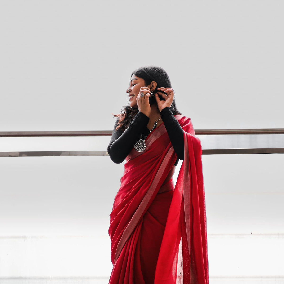 Red Crimson breeze – Pure Cotton Saree - Free Size